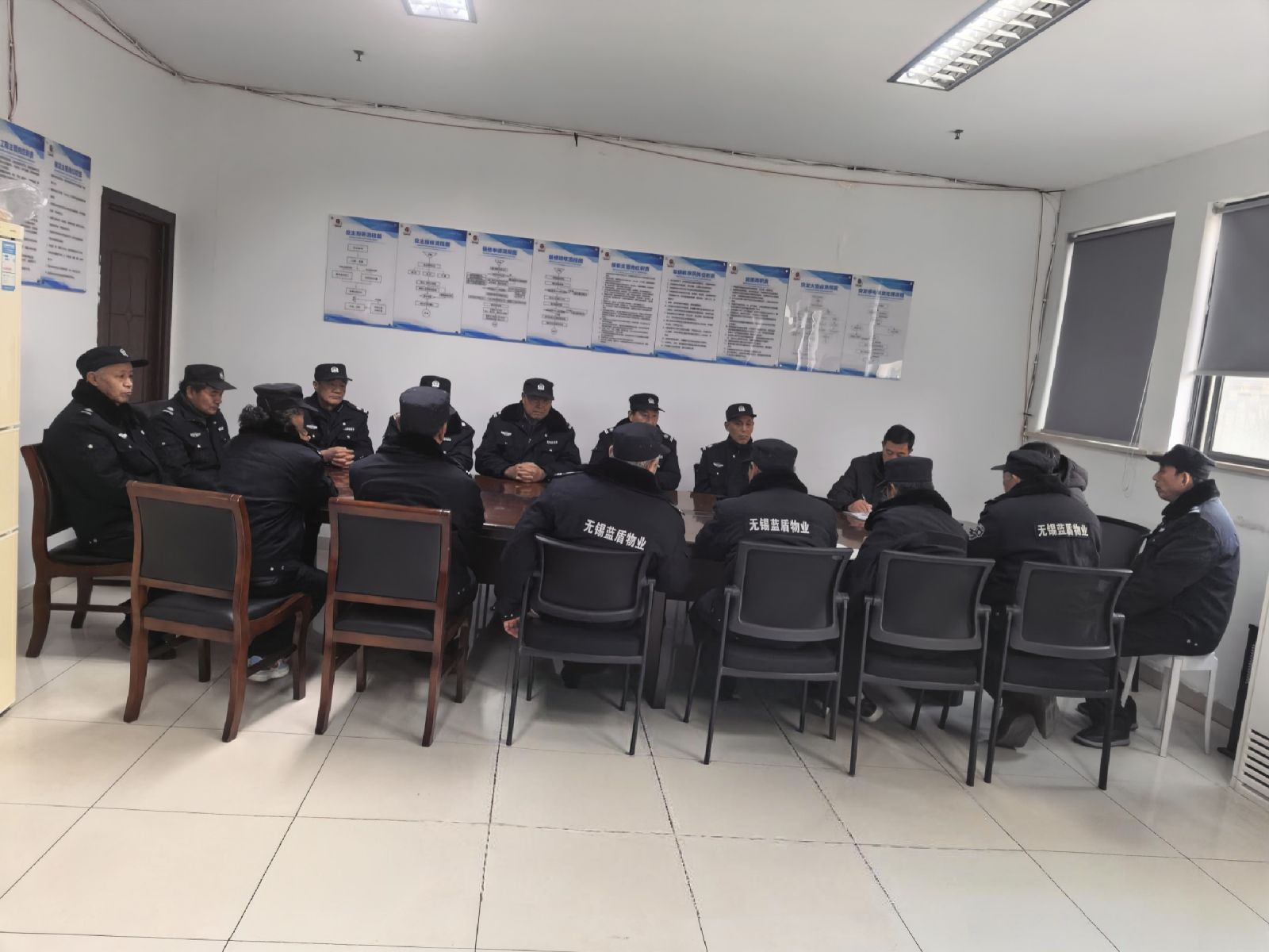 2026年1月28日下午,世纪名城召开全体保安年终会议。会议首先对2025年相关工作进行了总结。物业王主任在会上提出了新的工作要求,并强调要以更高的标准落实各项任务。白经理提出保安的行为举止要更职业规范化。曾经理强调各相关岗位的具体职责,并对后续的工作做出了部署。