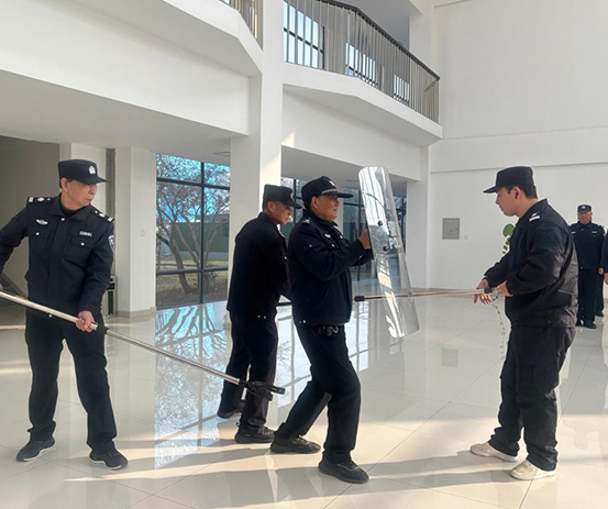 本次演练重点围绕三大核心内容展开:一是明确保安员职责任务,锤炼突发情况应急反应速度;二是开展盾、叉等防卫器械的实战应用训练;三是强化保安员"最小应急单元"战术队形的实操演练。通过反复演练,保安人员熟练掌握了防暴器械的使用技巧和协同战术,实战能力得到显著提升。